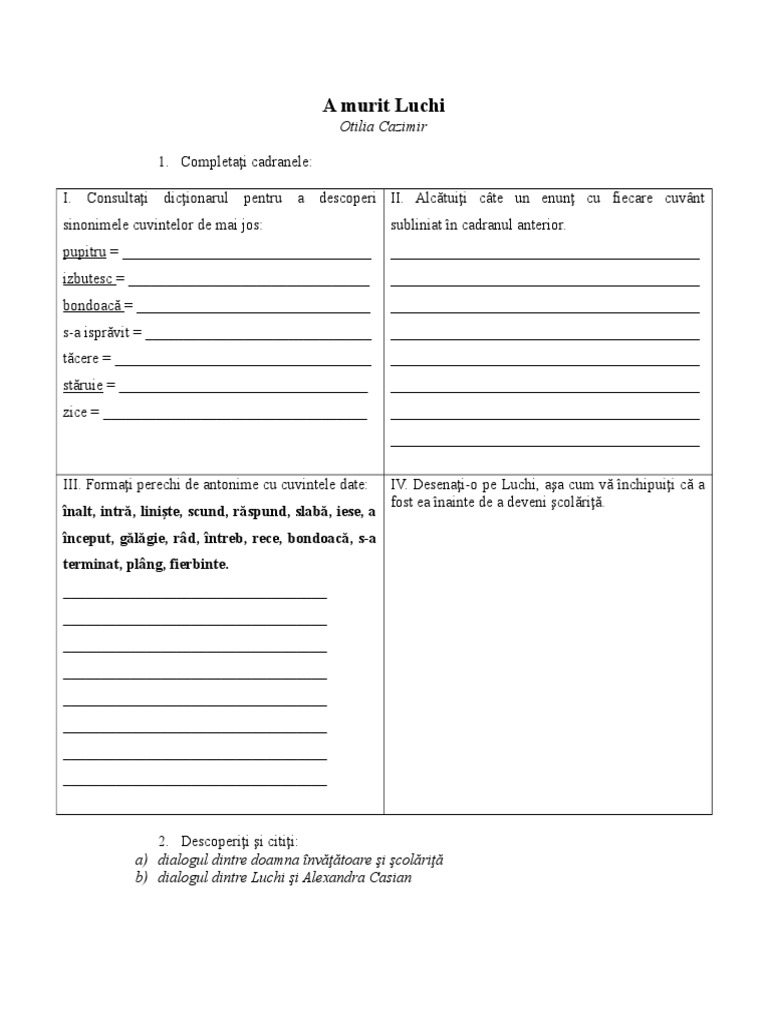 A Murit Luchi De Otilia Cazimir Fisa De Lucru