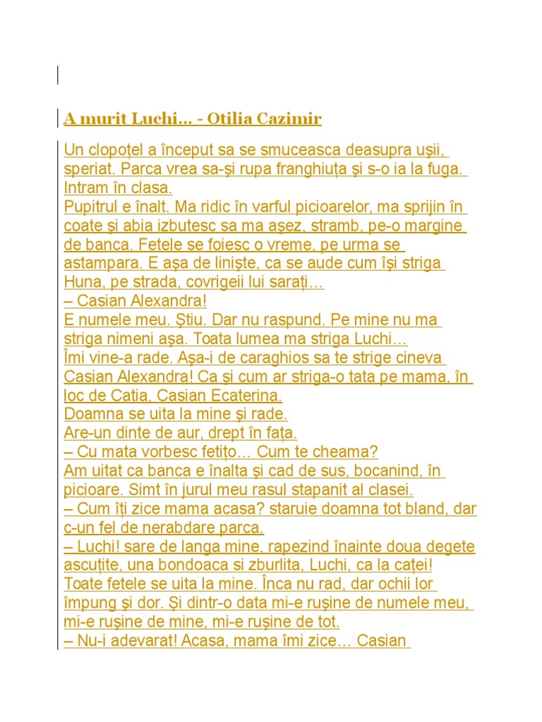 A Murit Luchi De Otilia Cazimir Pdf