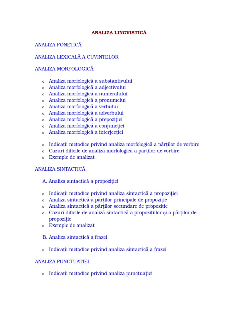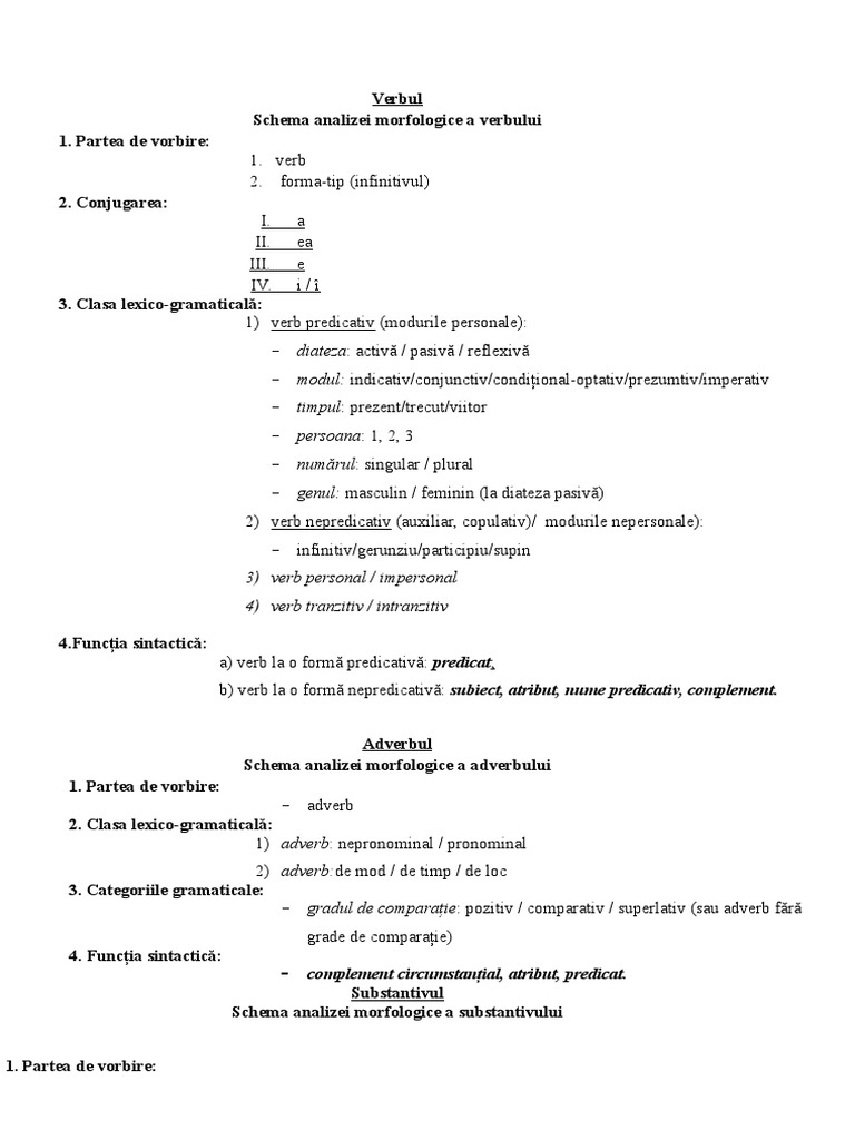 Pentru funcția sintactică trebuie să apară într o propoziție. Conjugare online pentru verbul a analiza în limba română la toate timpurile verbale. Morfologia este partea gramaticii care studiază cuvântul ca unitate gramaticală adică sub aspectul formei al modificărilor flexionare în cazul cuvintelor variabile și al conținutului al valorilor gramaticale exprimate prin diversele forme. Unele pronume nehotărât genulfeminin nr.