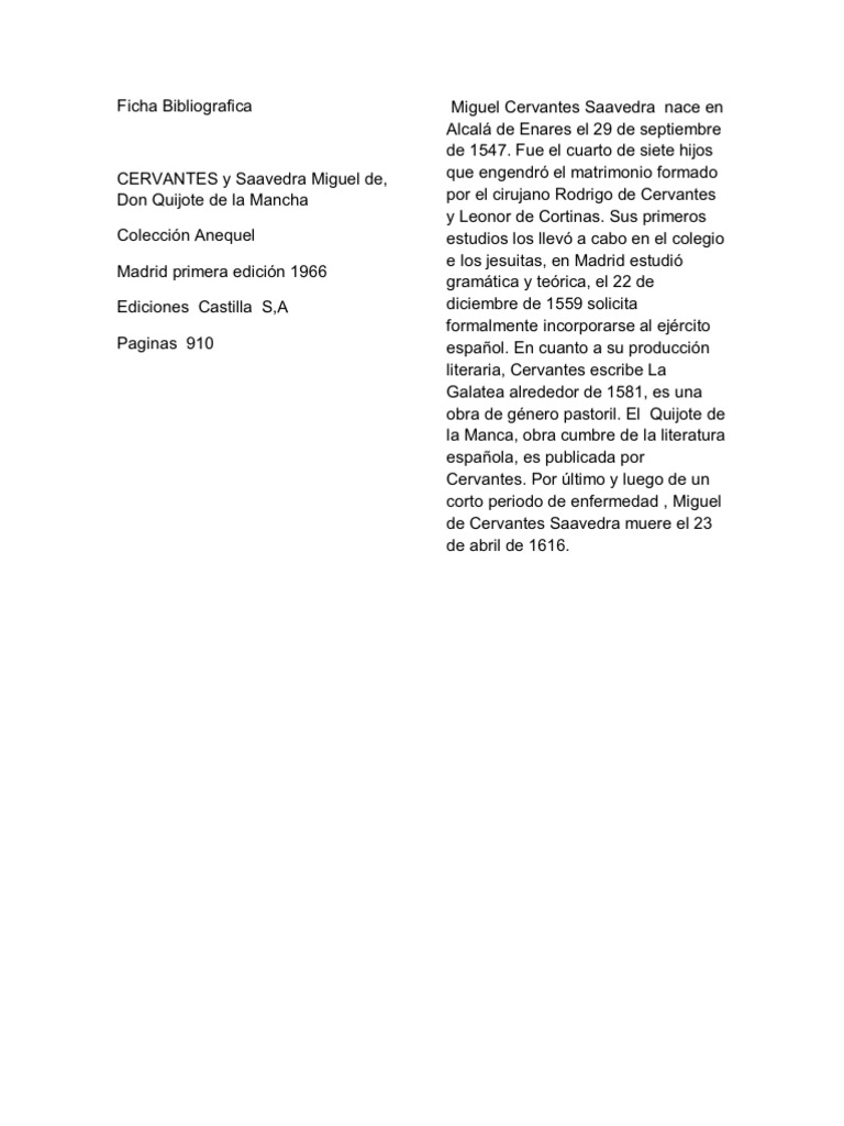 Bibliografía Del Libro Don Quijote Dela Mancha
