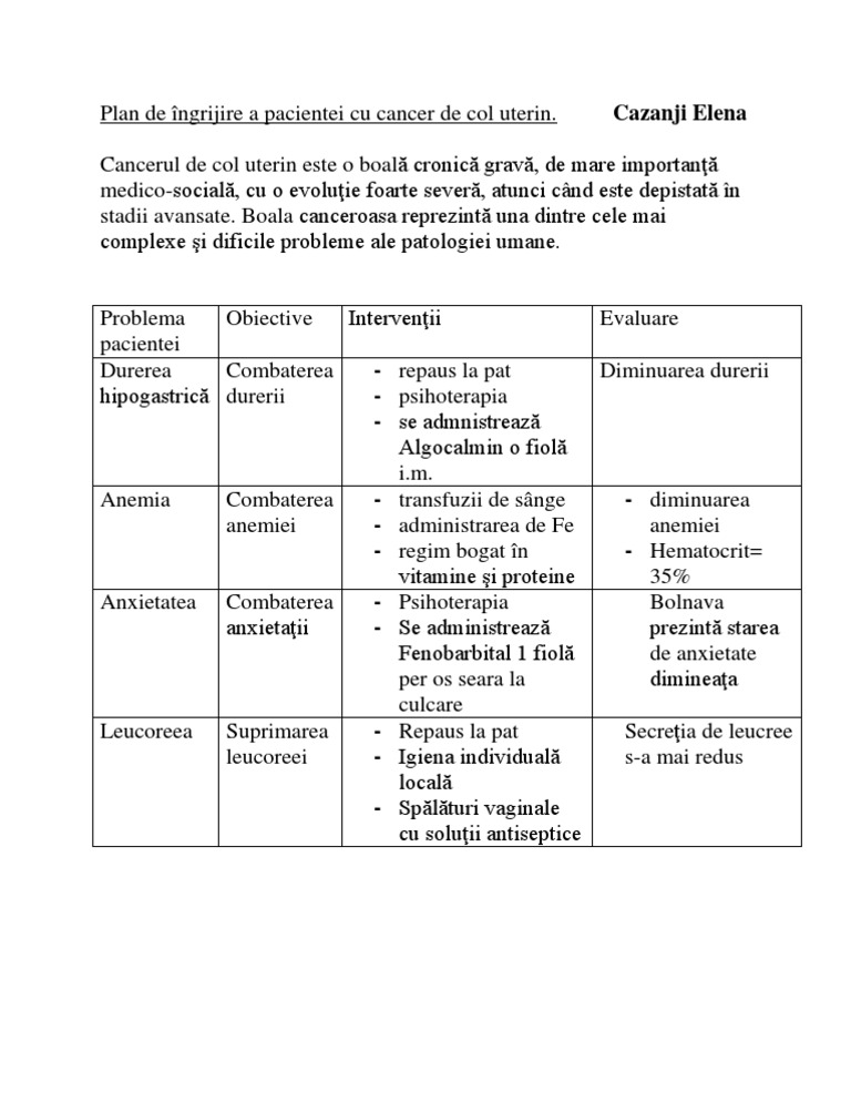 Proiect Ingrijirea Pacientei Cu Cancer De Col Uterin Medicina 379165