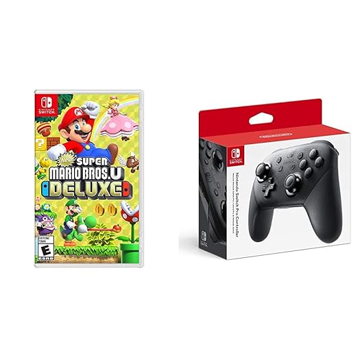 Amazon Com New Super Mario Bros U Deluxe Nintendo Switch Bundle With Nintendo Switch Pro Controller Video Games