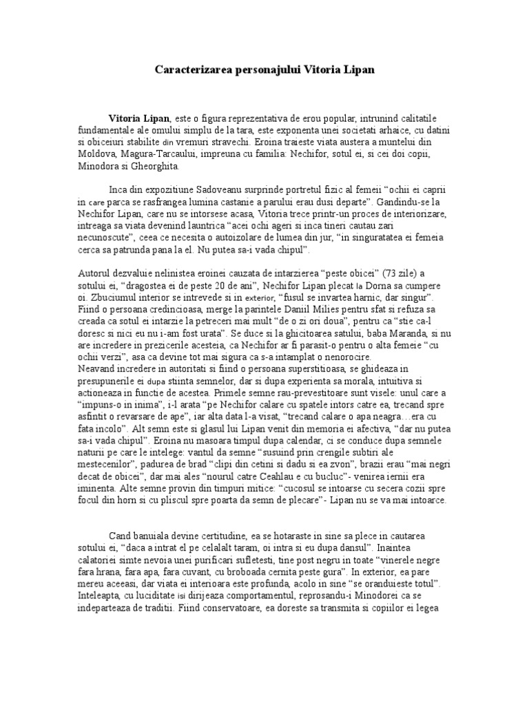 Doc Caracterizare Vitoria Lipan Baltagul De Mihail Sadoveanu Elena Grigorescu Academia Edu