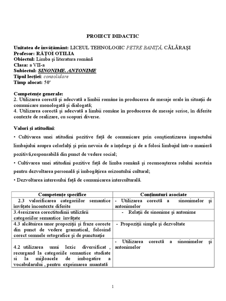 Fisă De Lucru Sinonime Antonime Paronime
