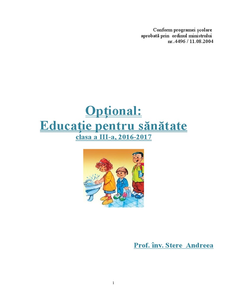 Educaţie Pentru Sănătate Clasa A 1 A Curs Opţional