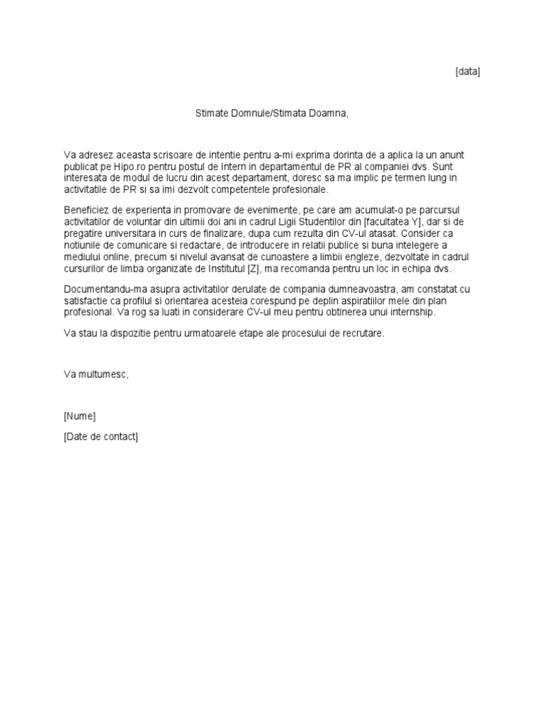 Pdf Model Scrisoare De Intentie Hr Alex Fane Academia Edu