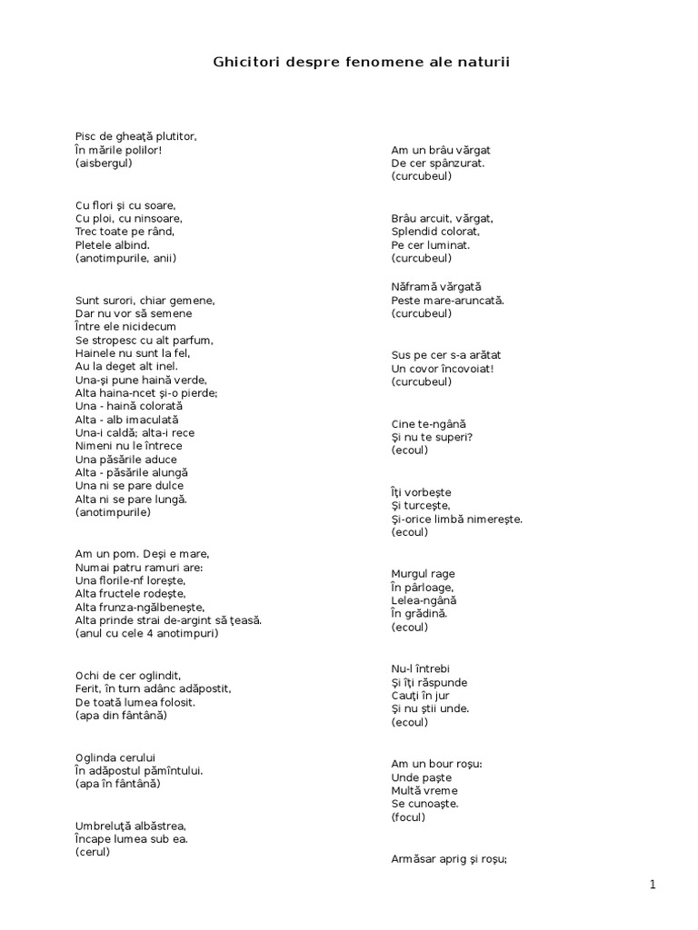 Ghicitori Despre Fenomene Ale Naturii Anideșcoală Ro