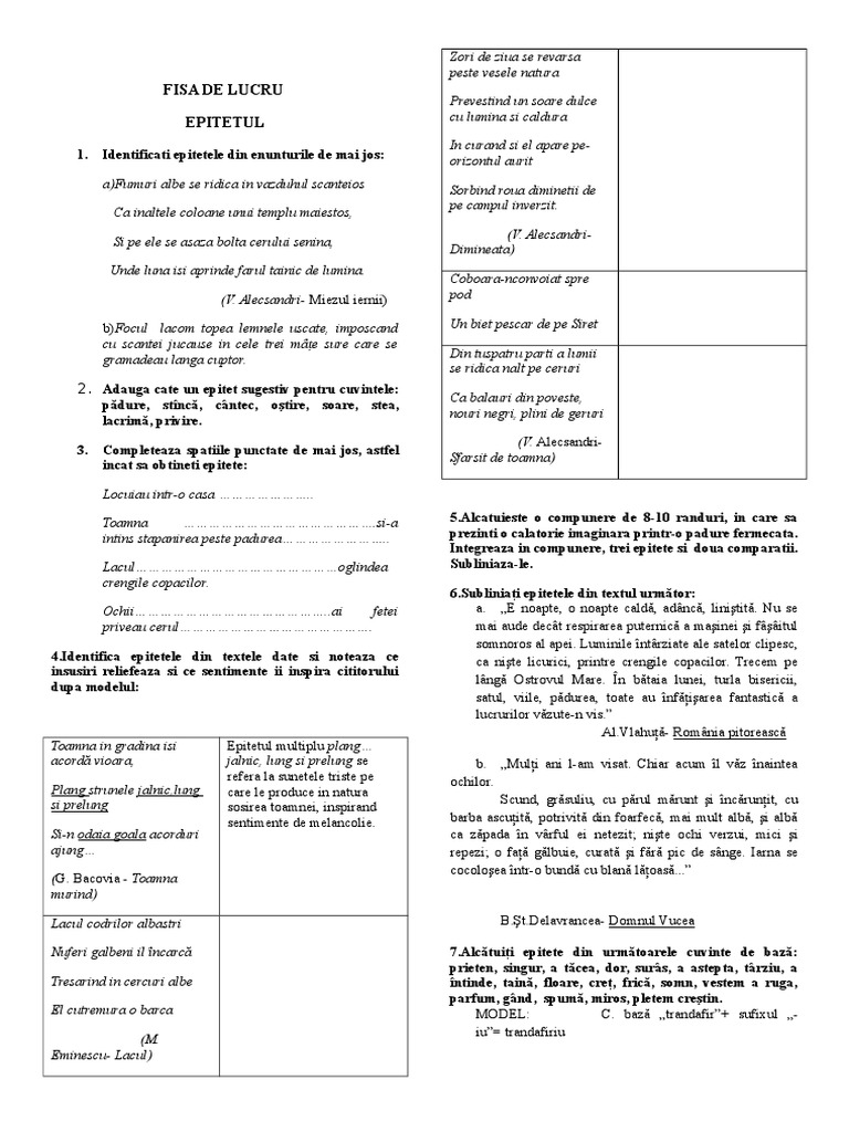 Completează Tabelul Cu Figurile De Stil Pe Care Le Identifici In Secvențele Date Brainly Ro