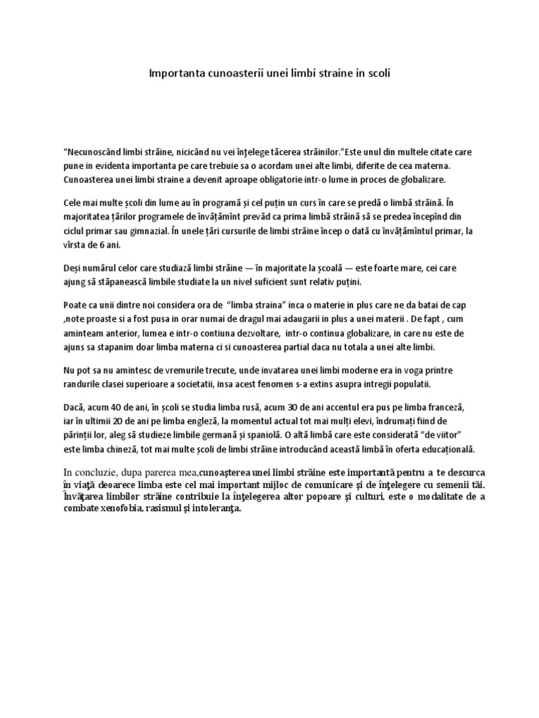 Text Argumentativ Despre Importanta Cunoașterii Unei Limbi Străine Texte