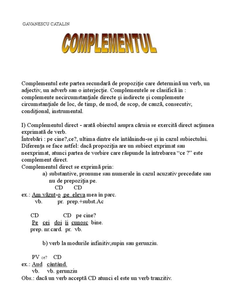 Prezentare La Tema Complementul Complemente Necircumstanțiale