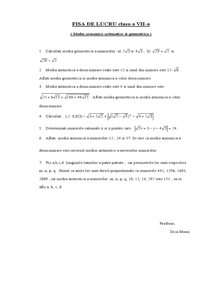 Media Aritmetica Media Geometrica Media Armonica Media Patratica Inegalitatea Mediilor Jitaruionelblog Pregatire Bac Si Evaluarea Nationala 2021 La Matematica Si Alte Materii Materiale Lectii Formule Exercitii Rezolvate Matematica Gimnaziu