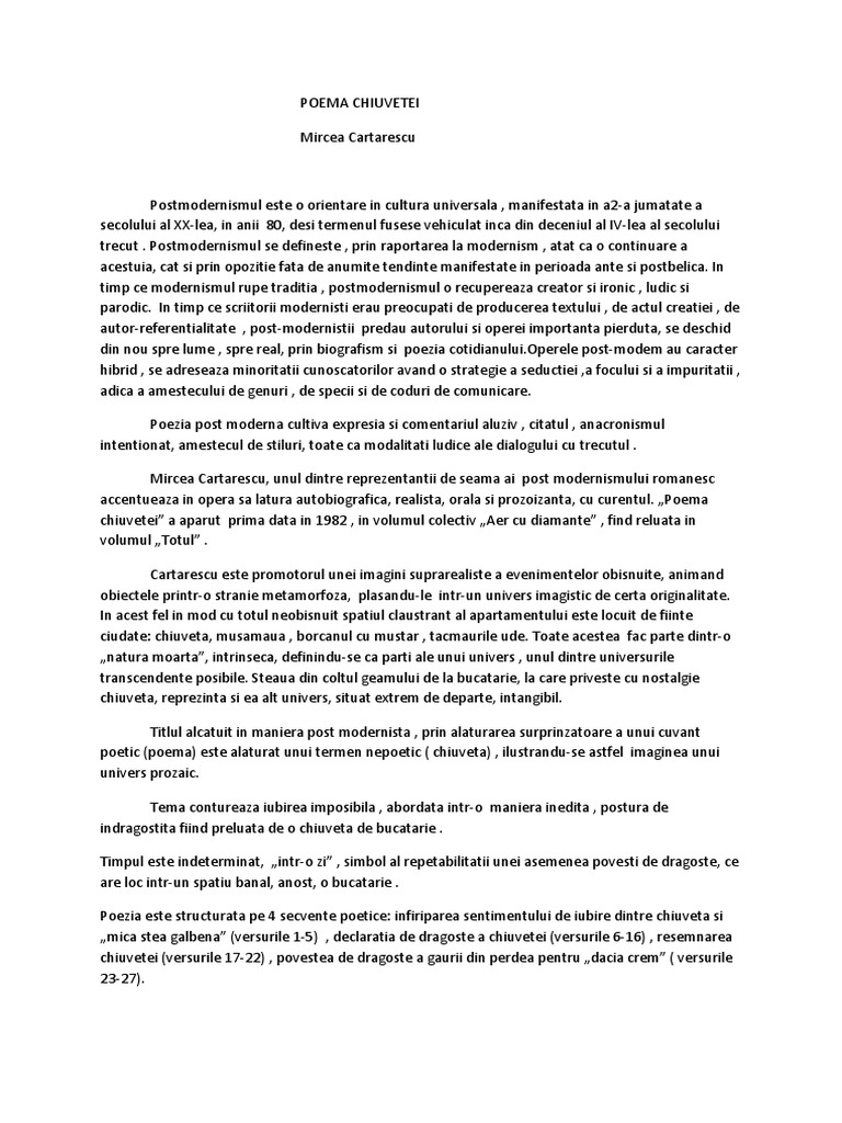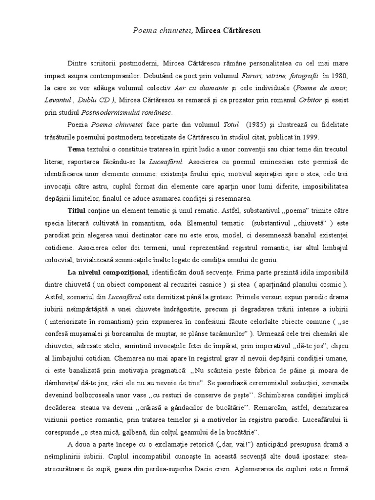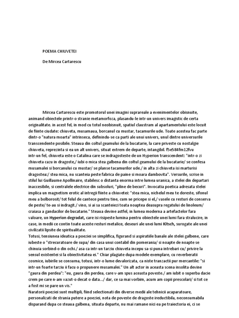 Referat Poema Chiuvetei De Mircea Cartarescu Romana 382419