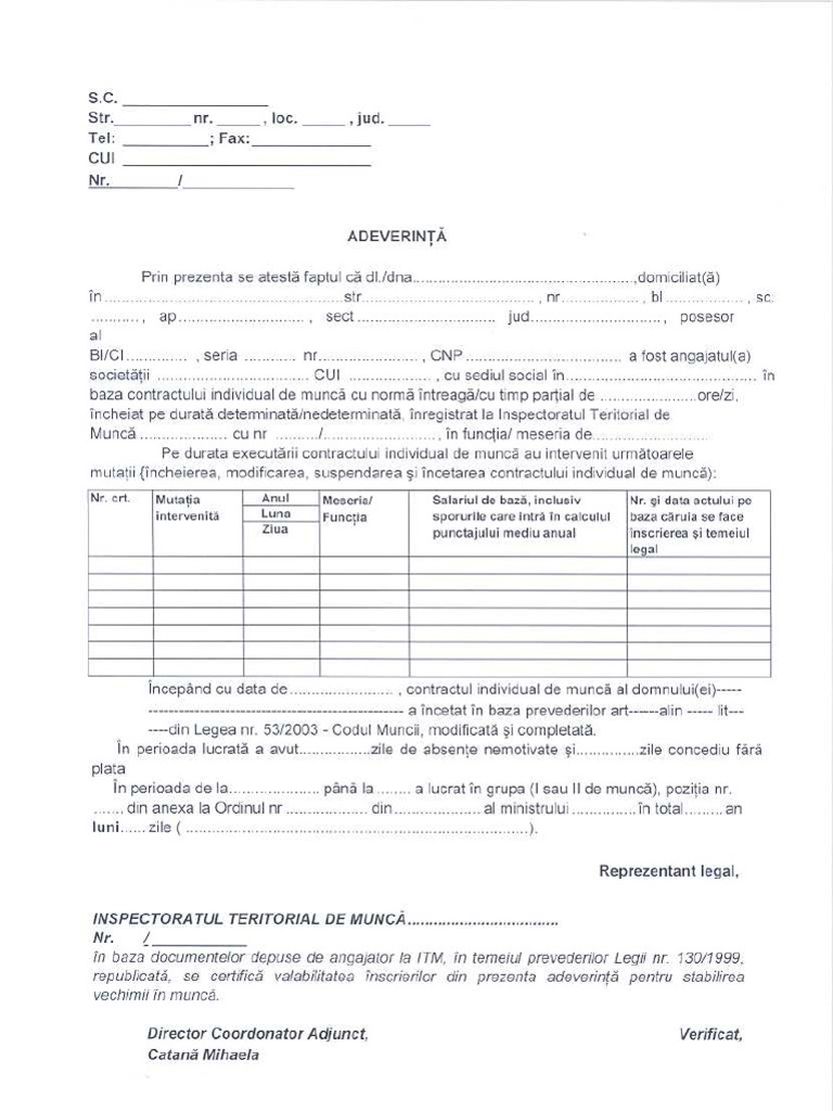 Aceasta obligatie a angajatorului de a pune la dispozitie adeverinta de vechime in munca la cererea angajatului este prevazuta in articolul 34 din codul muncii. Model de adeverinta de vechime in munca ce poate fi depusa la itm dolj craiova pentru a sti ce vechime de munca aveti. Menţionăm că s au constituit reţinut şi virat conform prevederilor legale contribuţiile. Datele de mai sus sunt extrase din documentele existente la dosarul angajatului.