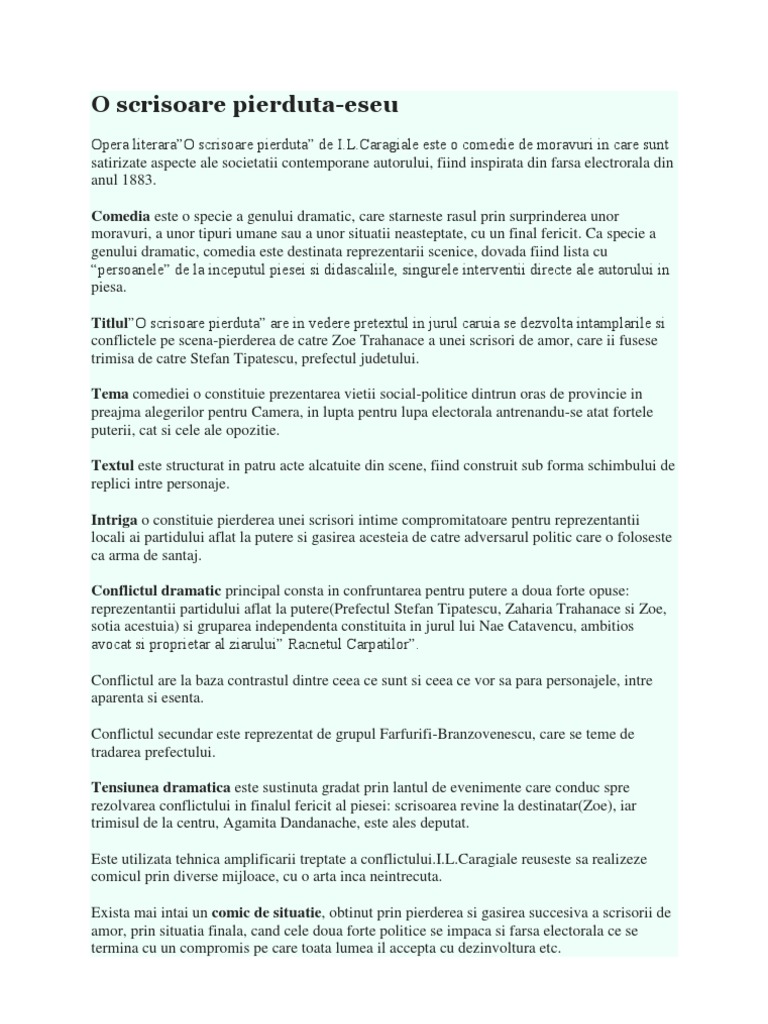 O Scrisoare Pierduta Eseu Structurat
