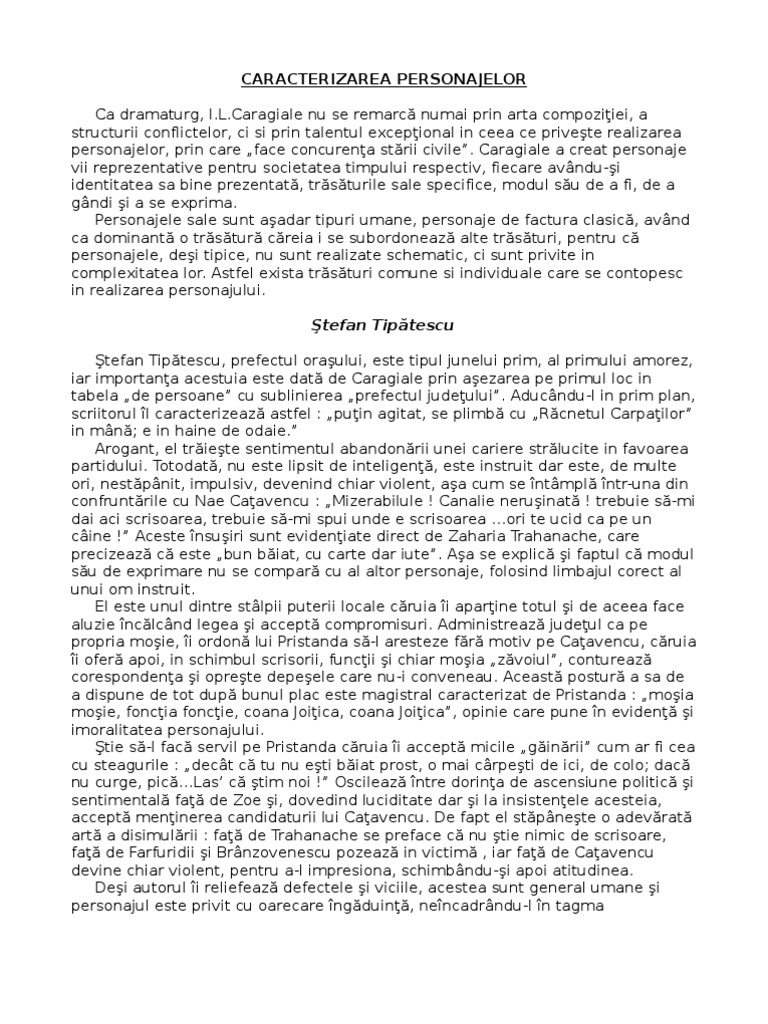 Doc Caracterizare Stefan Tipatescu O Scrisoare Pierduta De I L Caragiale Elena Grigorescu Academia Edu