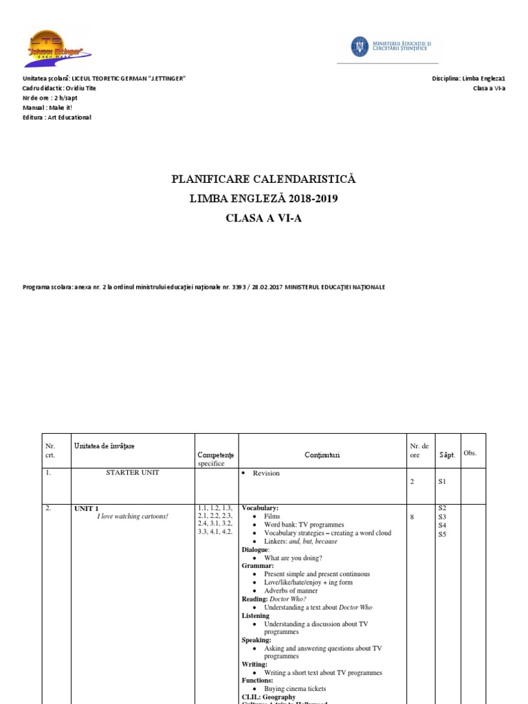 Planificare Calendaristica Engleza Intensiv Cl 6 Final
