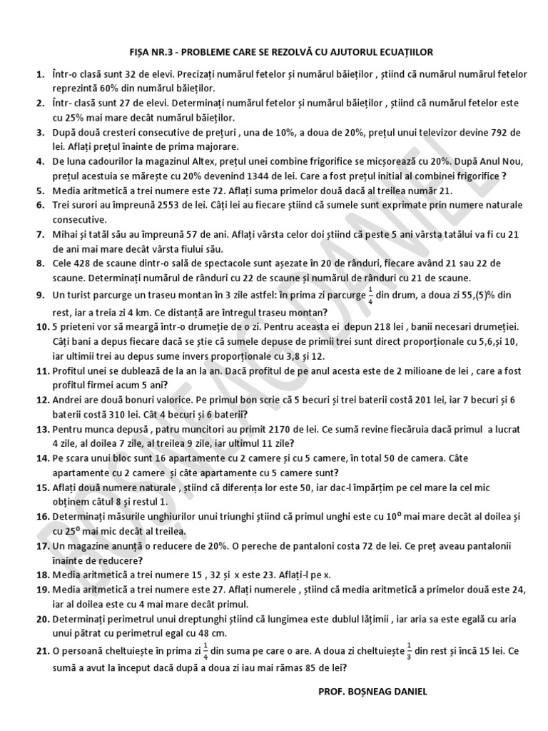 Probleme Care Se Rezolva Cu Ajutorul Ecuatiilor
