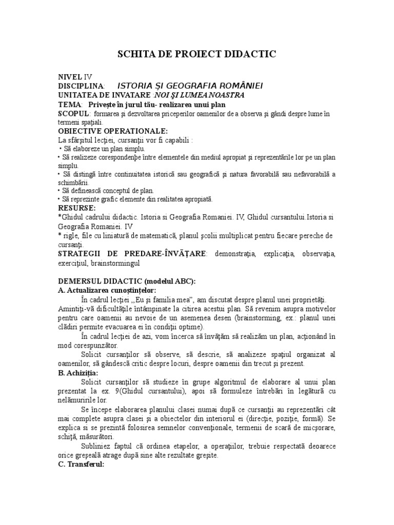 Doc Vizită Proiect Didactic Moldovan Adriana Academia Edu