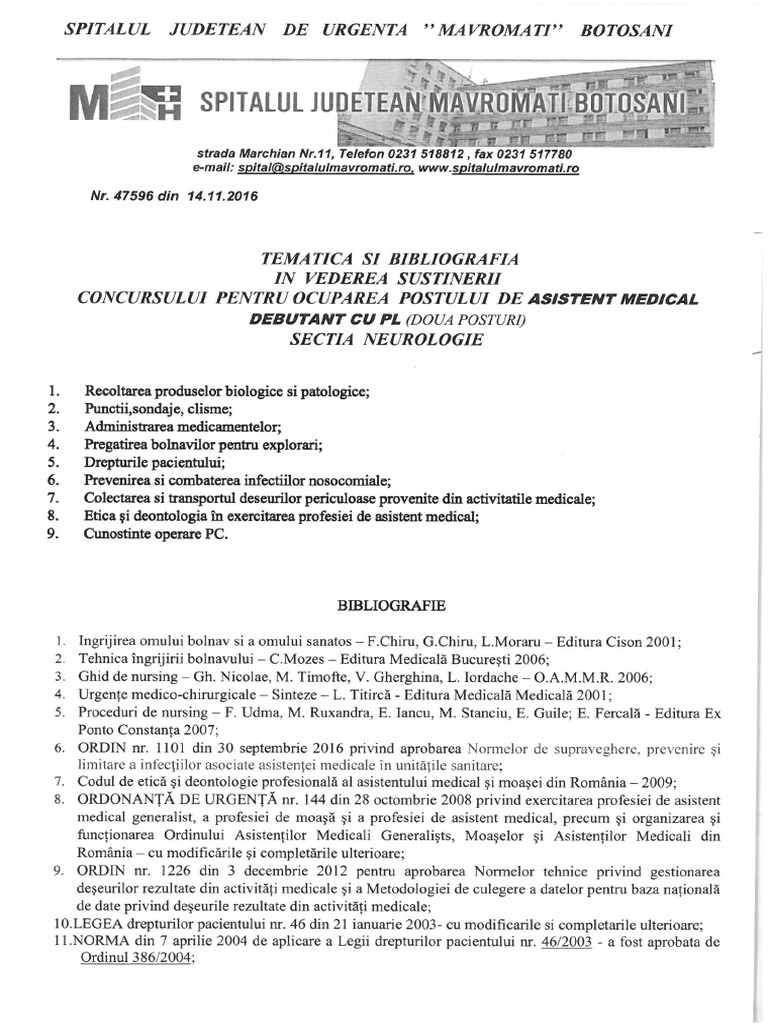 Tematica Si Bibliografie Concurs Asistent Medical Neurologie Pdf