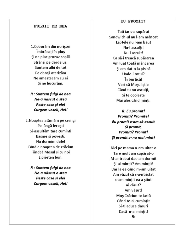 Versuri Cantece Serbare Craciun