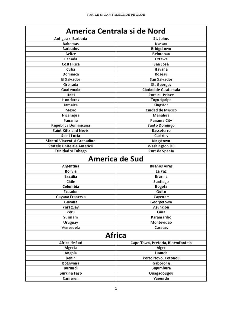 America ţări Si Capitale