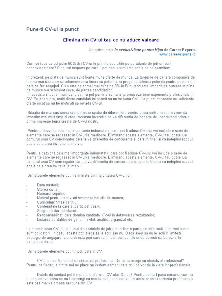 Totul Despre Cv