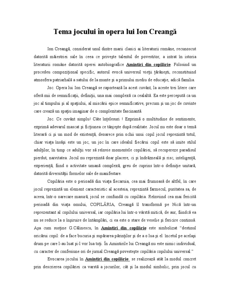 Tema Jocului In Amintiri Din Copilarie